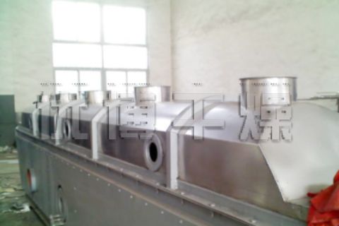 香料干燥機(jī)是由物料自進(jìn)料進(jìn)口進(jìn)入機(jī)內(nèi),在振動(dòng)力作用下,物料沿水平面流化床拋擲,向前連續(xù)運(yùn)動(dòng),熱風(fēng)向上穿過(guò)流化床同濕物料換熱后,濕空氣經(jīng)旋風(fēng)分離器除塵后由排風(fēng)1:3排出.干...